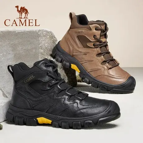 骆驼男鞋春季新款耐磨防滑高帮鞋防撞厚底户外登山徒步工装鞋男士